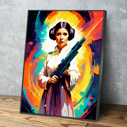 Abstract Princess Leia Canvas Wall Art, Colorful Princess Leia Print