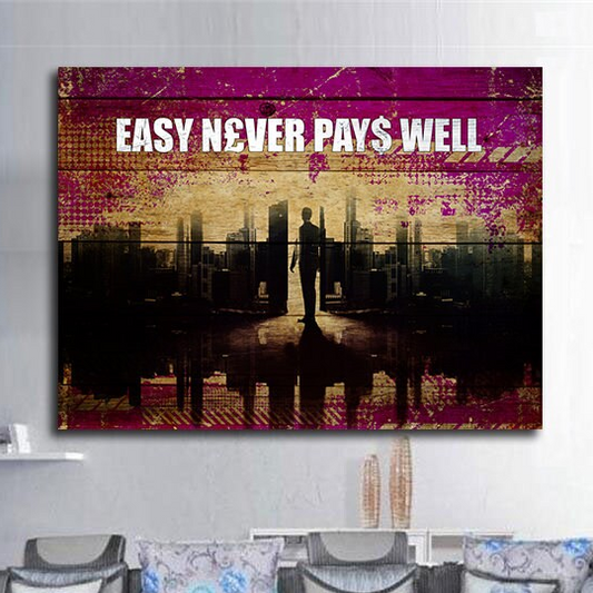 Easy Never Pays Well Canvas Wall Art, Motivational Wall Decor, Motivational Decor, Hustle Art, Inspirational Decor, Office Decor
