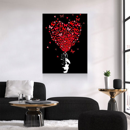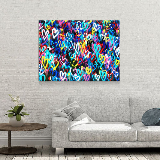 Love Hearts Graffiti Canvas Wall Art, Banksy Print, Graffiti Wall Art, Abstract Decor, Graffiti Decor
