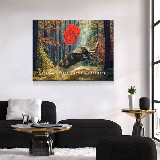 Dreams Weigh More Than Excuses Canvas Wall Art, Motivational Decor, Inspirational Decor, Office Decor, Elephant Balloons