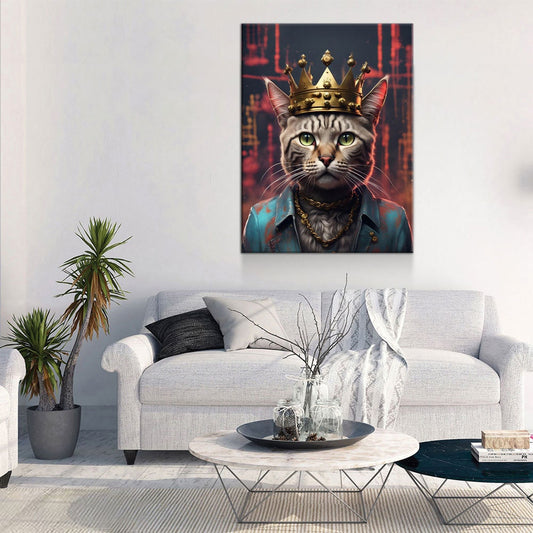 Street King Cat Canvas Wall Art, Abstract Cat Art, Street Cat Art, Cat With Crown Print, Funny Cat Print