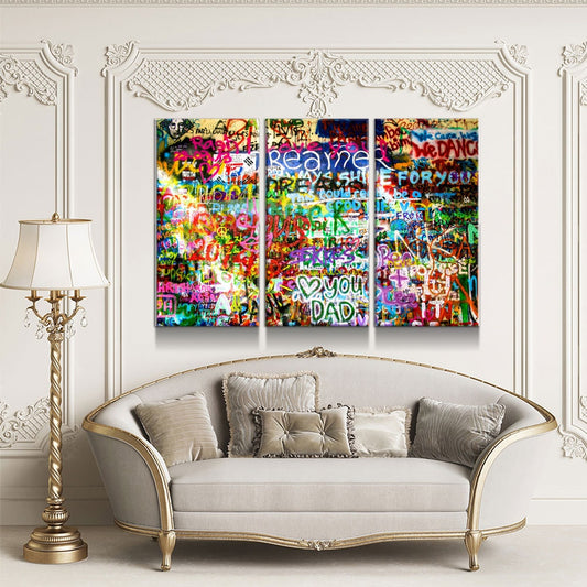 Lennon Dreamer Canvas Wall Art, Lennon Wall, Abstract Art, 3 Piece Wall Art Set, Lennon Wall Prague, Graffiti Wall