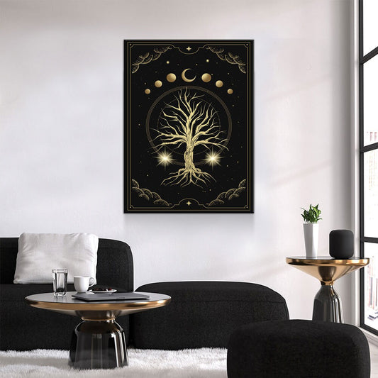 Magical Sacred Tree Canvas Wall Art, Moon Phase Art, Celestial, Esoteric, Boho Style Art, Astrology, Tarot Reader Canvas