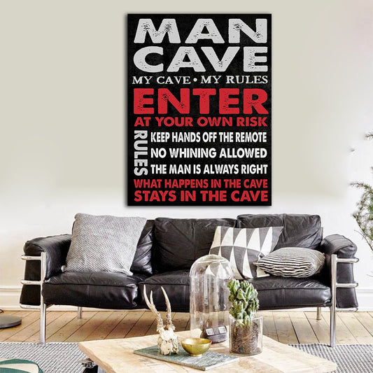 Man Cave Sign Canvas Wall Art, Man Cave Decor - The Perfect Man Cave Gift Man Cave Wall Art