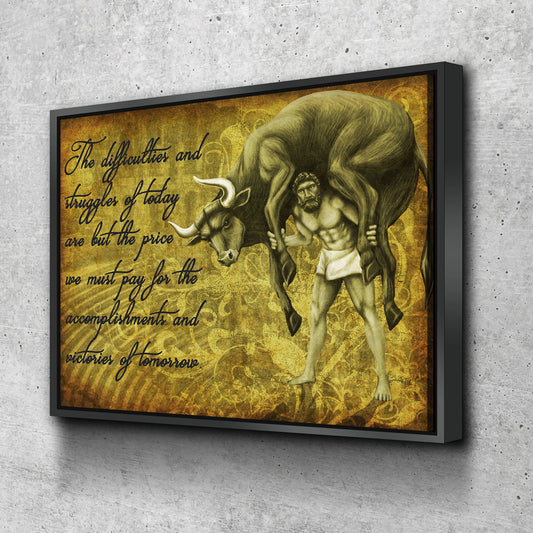 Milo Of Croton Olympian Greek Culture Canvas Wall Art, Milo The Olympic Wrestler Quote On Canvas