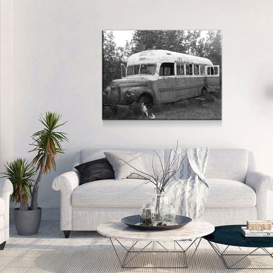 McCandless Bus Into The Wild Canvas Wall Art, Alaska, American Hiker Bus, Fairbanks City Transit System Bus 142, Stampede Trail