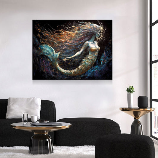 Mermaid Canvas Wall Art, Abstract Mermaid Decor, Mermaid Canvas Print, Mermaid Wall Decor, Mermaid Art, Kids Room Decor, Fantasy Art