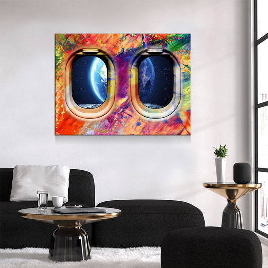 Airplane Window Seat Earth View, Abstract Decor, Travel Space Lovers Canvas Wall Art, Galaxy Getaway, Travel Decor, Airplane Window Art