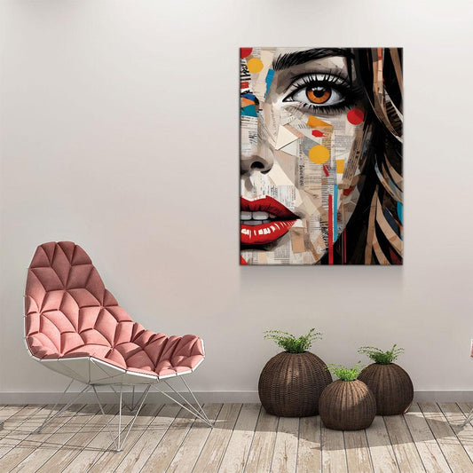 Pop Girl Canvas Wall Art, Newspaper Pop Art Girl, Pop Art Decor, Brown Eyed Girl, Red Lips Decor, Retro Style Art, Bright Colorful Art