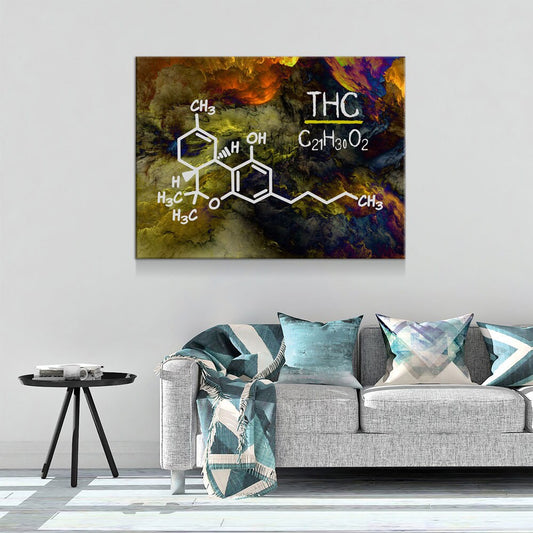 THC Structure Abstract Canvas Wall Art, Chemical Structural Formula Decor, Tetrahydrocannabinol Decor