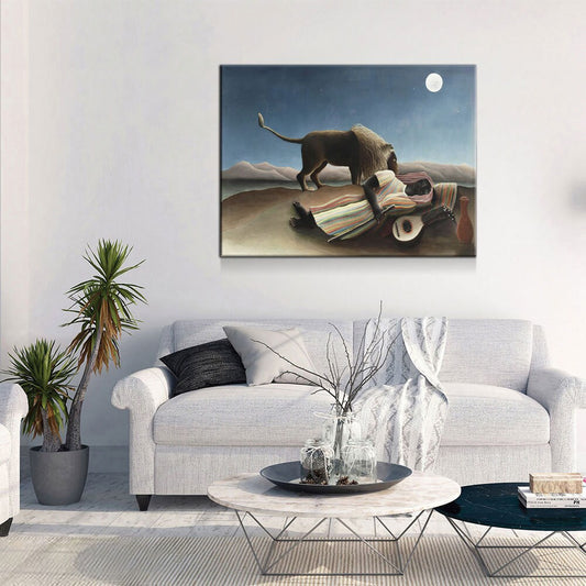 The Sleeping Gypsy Canvas Wall Art, Henri Rousseau Art, 1897 Famous Painting, La Bohémienne endormie, French Naïve artist