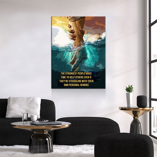 The Strongest People Make Time To Help Others Even If They're Struggling With Their Own Personal Demons Canvas Wall Art, Inspirational Decor