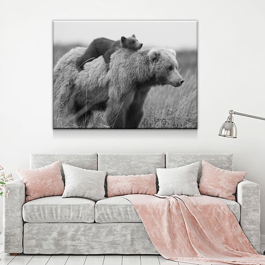 Bear & Cub Canvas Wall Art, Bear Cub And Momma Bear Decor, Wilderness, Wildlife, Nature Artwork, Grizzly Bear