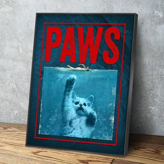 Paws Cute Cat Jaws Parody Canvas Wall Art For Home, Office or Dorm Kitten, Cat, Shark, Jaws