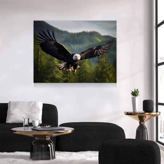 Flying Bald Eagle Canvas Wall Art, Bald Eagle Soaring Through Forest, Bald Eagle Decor, North American Eagle
