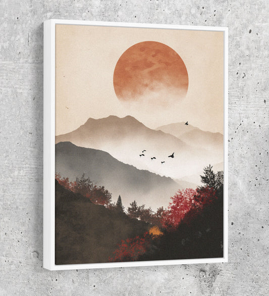 Japandi Red Sun Canvas Wall Art, Japandi Art, Japanese Wall Art, Japandi Decor, Japandi Zen Wall Art, Watercolor Style, Red Sun In Woods