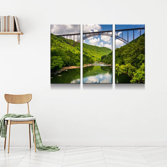 New River Gorge Bridge Skyline Canvas Wall Art, West Virginia New River Gorge Canvas Print, 3 Piece Wall Art Set, Fayetteville WV