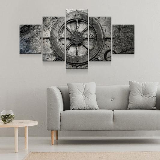 Captain Ships Wheel Canvas Wall Art Nautical Decor 5-PC Set