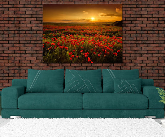 Poppy Flower Poppy Field Canvas Wall Art, Sunset Poppy Fields Art