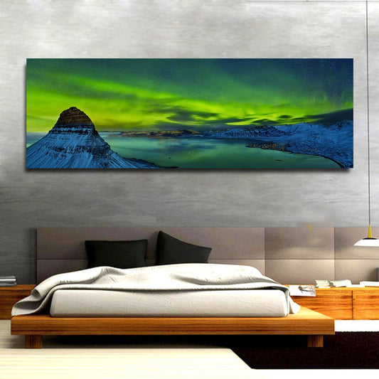 Northern Lights Aurora Borealis Framed Canvas Wall Art Landscape Iceland Decor Kirkjufell Mountain