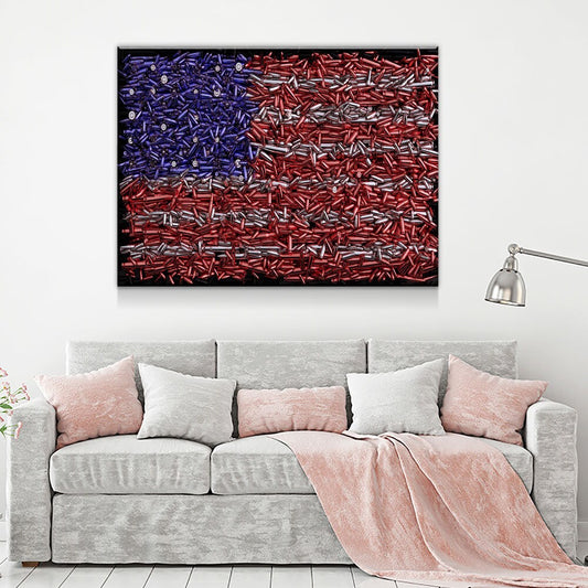 USA Bullet Flag Canvas Wall Art Print, USA Flag, Military, Veterans, 2nd Amendment, Right To Keep And Bear Arms
