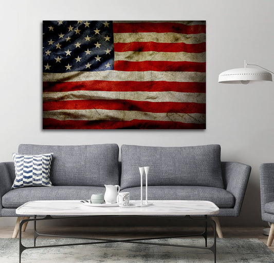 American Flag Canvas Wall Art Grunge Style American Flag
