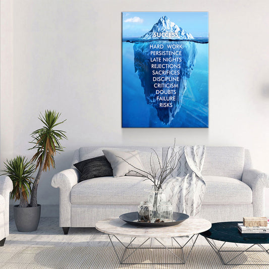 Success Hard Work Persistence Quote Success Is An Iceberg Canvas Wall Art, Motivational Decor