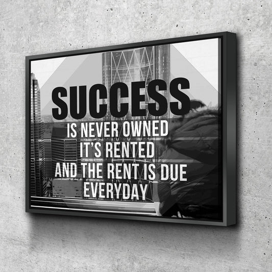 Success Is Never Owned It's Rented Canvas Wall Art Motivational Art
