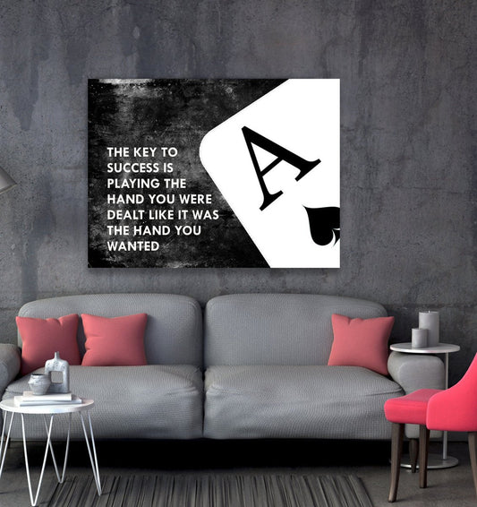 The Key To Success Is Playing The Hand You Were Dealt Canvas Wall Art, Ace Of Spades Motivational Decor