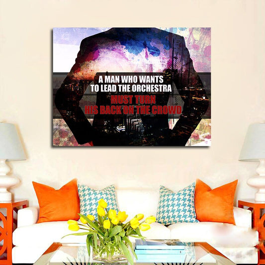 A Man Who Wants To Lead The Orchestra Must Turn His Back On The Crowd Canvas Wall Art, Office Decor, Motivational Decor, Hustle Art