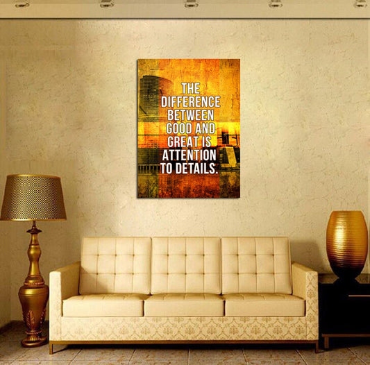 The Difference Between Good And Great Is Attention To Details Canvas Wall Art, Get It Done, Office Decor, Inspiration, Motivational Quotes