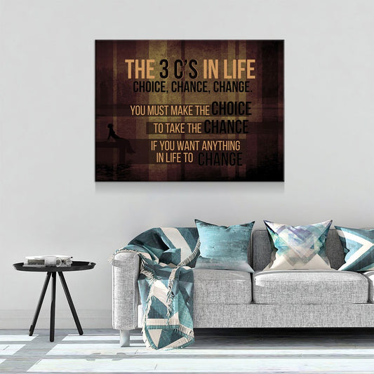 The 3 C's In Life Choice, Chance, Change Motivational Canvas Wall Art, Office Decor, Motivational Wall Decor, Success Quotes