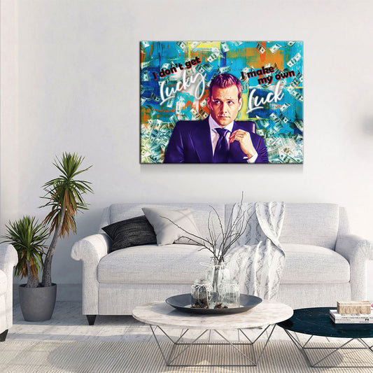 I Don't Get Lucky I Make My Own Luck Canvas Wall Art, Harvey Specter Quote, Motivational Decor, Inspirational Quote, Hustle Quote