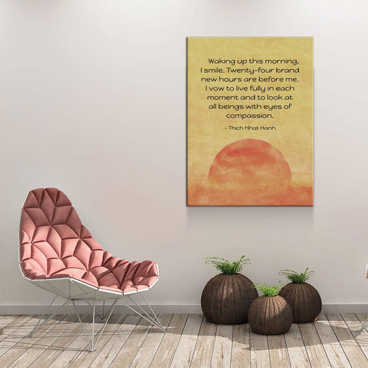 Waking Up This Morning, I Smile Motivational Canvas Wall Art, Thich Nhat Hanh Quote, Meditation Wall Art