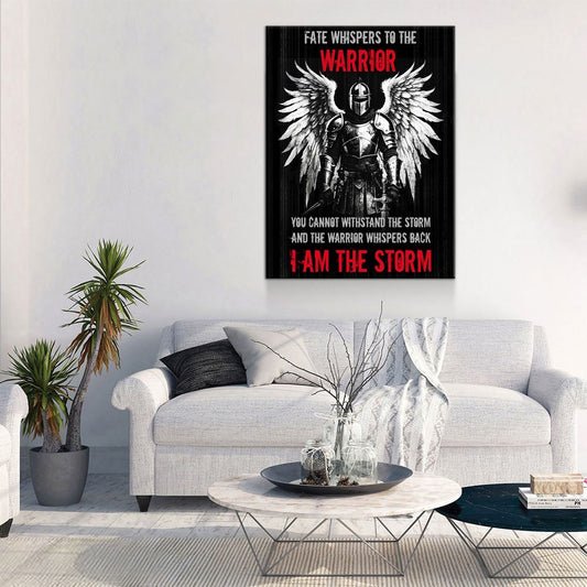 Fate Whispers To The Warrior Canvas Wall Art, The Warrior Whispers Back I Am The Storm, Warrior Print, Warrior Quote, Man Cave Decor