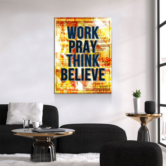 Work Pray Think Believe Canvas Wall Art, Motivational Decor, Motivational Quotes, Office Decor, Inspirational Quote, Hustle Art