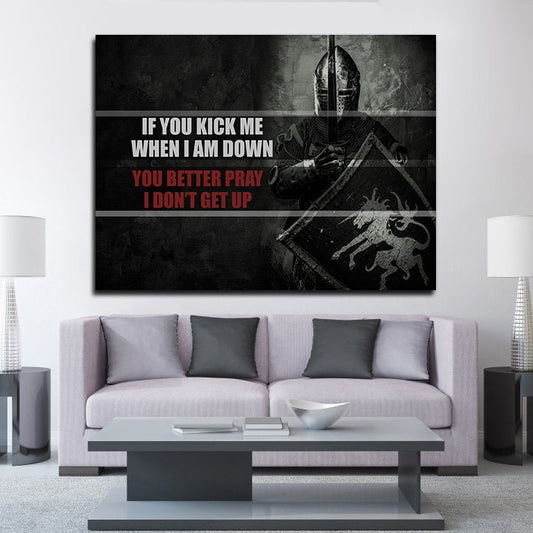 If You Kick Me When I'm Down Motivational Framed Wall Art Canvas Decor Medieval Art