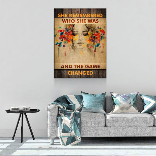 She Remembered Who She Was And The Game Changed Canvas Wall Art, Women Motivational Art, Inspirational Decor