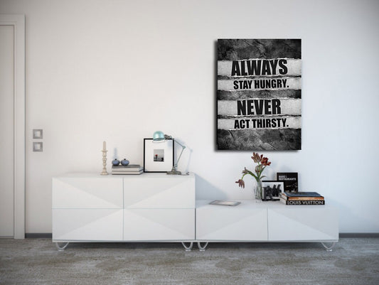 Always Stay Hungry Never Act Thirsty Motivational Canvas Wall Art, Motivational Decor, Motivational Sign, Office Decor