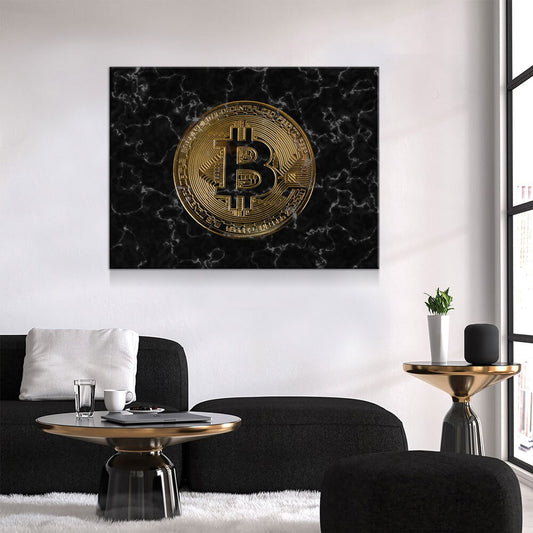 Bitcoin Black Marble Canvas Wall Art, Office Decor, Bitcoin, Crypto Currency, Block Chain, Decentralized Currency, Bitcoin Wall Art