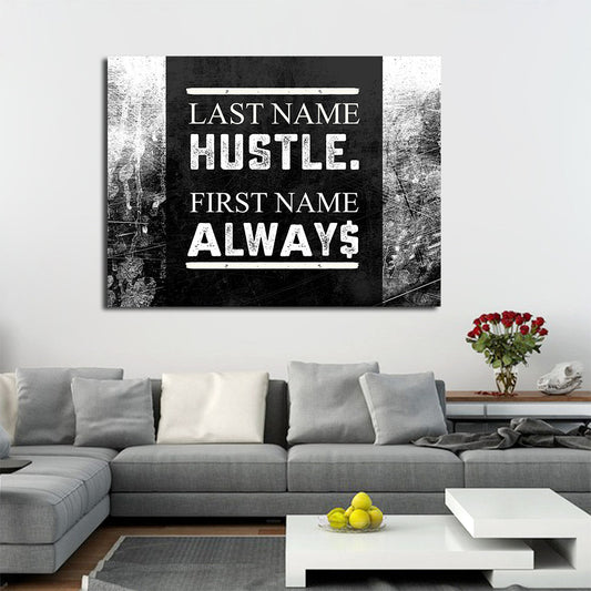 Last Name Hustle First Name Always Framed Canvas Wall Art