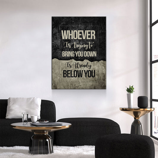 Whoever Is Trying To Bring You Down Is Already Below You Canvas Wall Art, Motivational Wall Decor