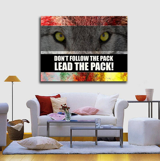 Don't Follow The Pack Lead The Pack! Framed Canvas Wall Art Motivational Office Art Wolf Art
