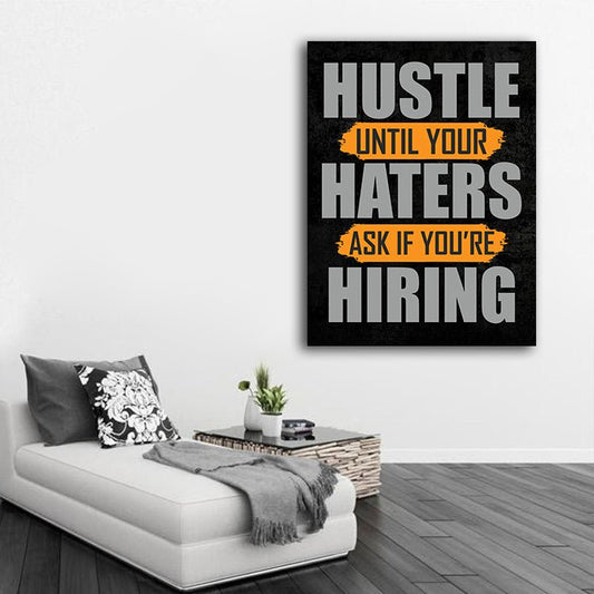 Hustle Until Your Haters Ask If Your Hiring Motivational Canvas Wall Art