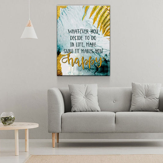 Whatever You Decide To Do In Life, Make Sure It Makes You Happy Canvas Wall Art, Inspirational Quote