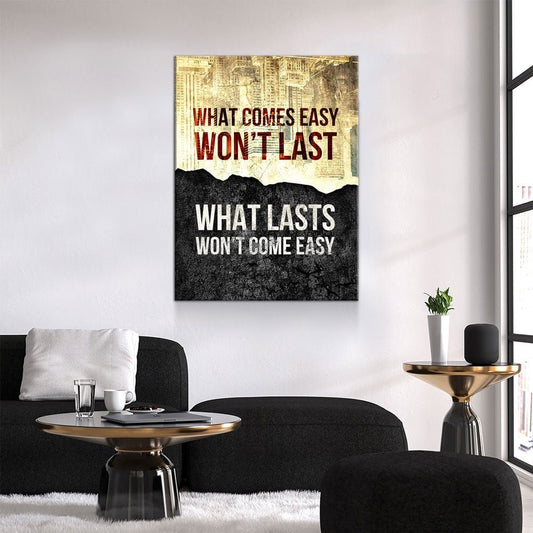 What Comes Easy Won't Last, What Lasts Won't Come Easy Canvas Wall Art, Motivational Decor