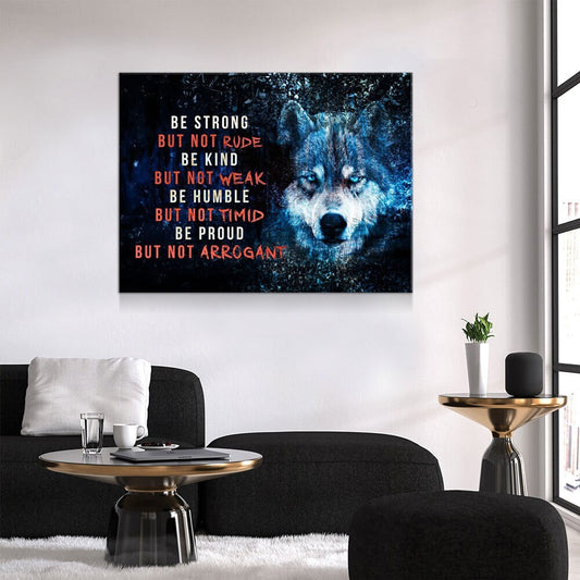 Wolf Motivational Canvas Wall Art, Be Strong, Be Kind, Be Humble, Be Proud
