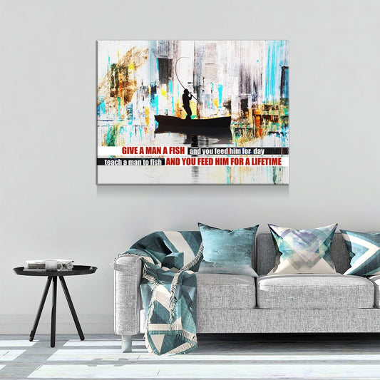 Teach A Man To Fish Canvas Wall Art, Motivational Abstract Art, Feed Him For A Lifetime