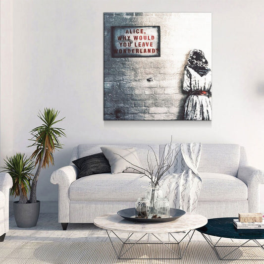 Alice Why Leave Wonderland Canvas Wall Art, Banksy Style Art, Graffiti Art, Graffiti Decor