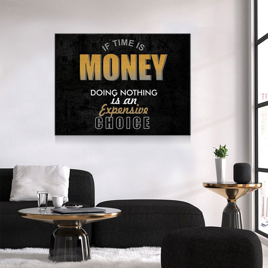 If Time Is Money Doing Nothing Is An Expensive Choice Canvas Wall Art, Motivational, Success, Inspiration, Motivational Wall Decor